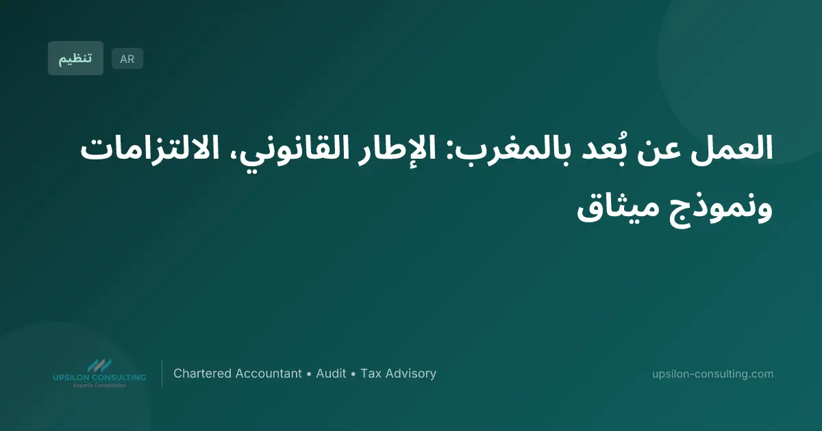 ترافق Upsilon Consulting المقاولات في تحرير مواثيق العمل عن بُعد والملاحق وفي المطابقة الاجتماعية والجبائية. تواصلوا مع فريقنا لمرافقة مخصصة.