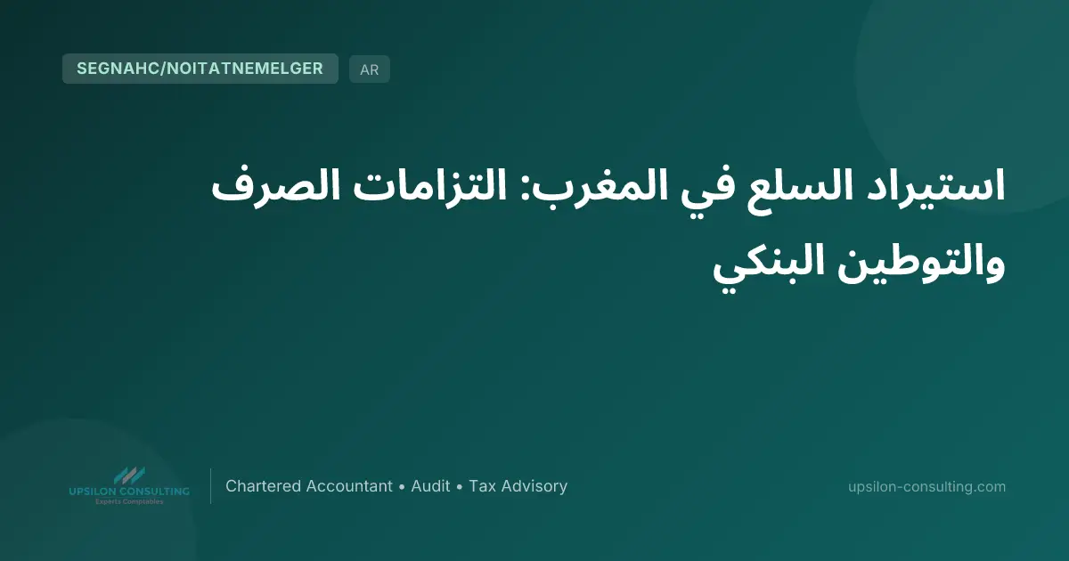 باختصار: يجب أن يخضع كل استيراد للسلع في المغرب لـتوطين بنكي عبر PortNet قبل التخليص الجمركي. يتوفر المستورد على أجل 360 يوماً لتسديد مورده الأجنبي و60 يوماً بعد التضمين الجمركي لتصفية ملفه. تؤطر IGOC 2026 (Art. 42-77) هذه العمليات بصرامة. يرافقكم Upsilon Consulting في تدبير ملفات الاستيراد الخاصة بكم.