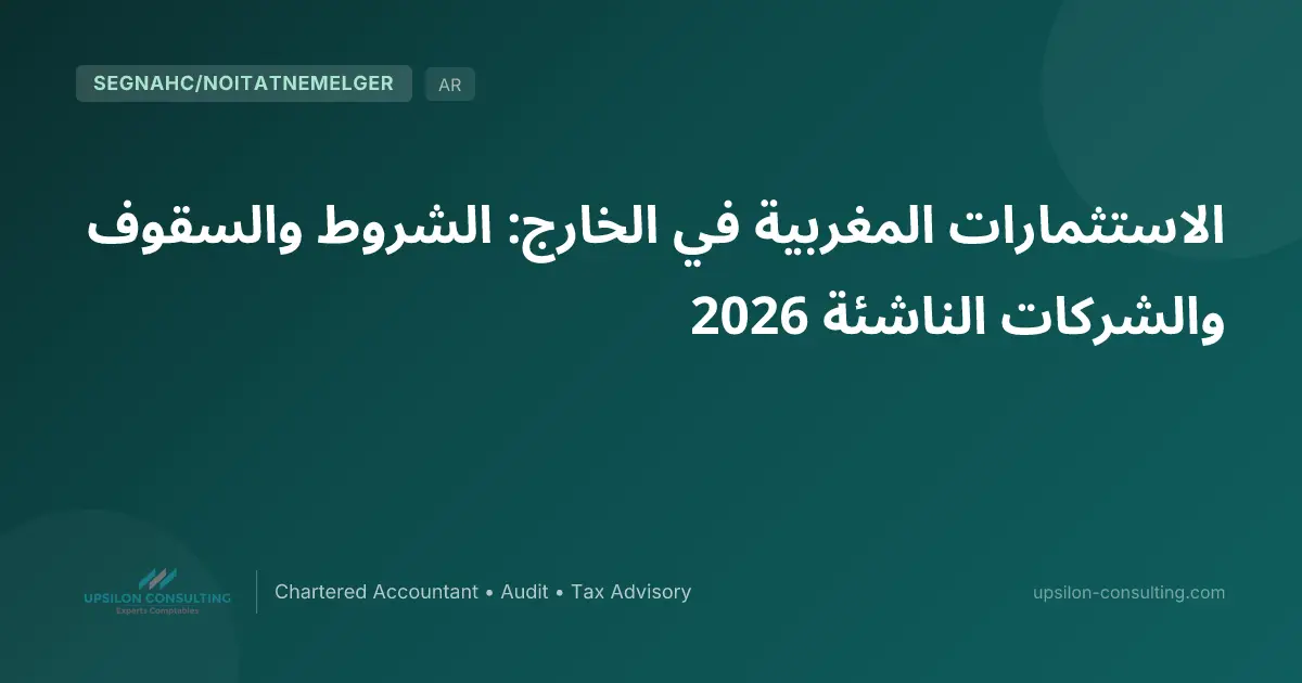 باختصار: تؤطر IGOC 2026 الاستثمارات المغربية في الخارج بسقف 200 مليون درهم سنوياً للأشخاص المعنويين المستوفين لشروط الأهلية (3 سنوات نشاط، حسابات مصادق عليها من مراقب الحسابات). تستفيد الشركات الناشئة المعتمدة من ADD من نظام استثنائي بـ10 ملايين درهم/سنة. تُدخل IGOC 2026 أيضاً أحكاماً حول مساهمة الأجراء في رأس المال. يرافقكم Upsilon Consulting في هيكلة مشاريعكم الاستثمارية على المستوى الدولي.