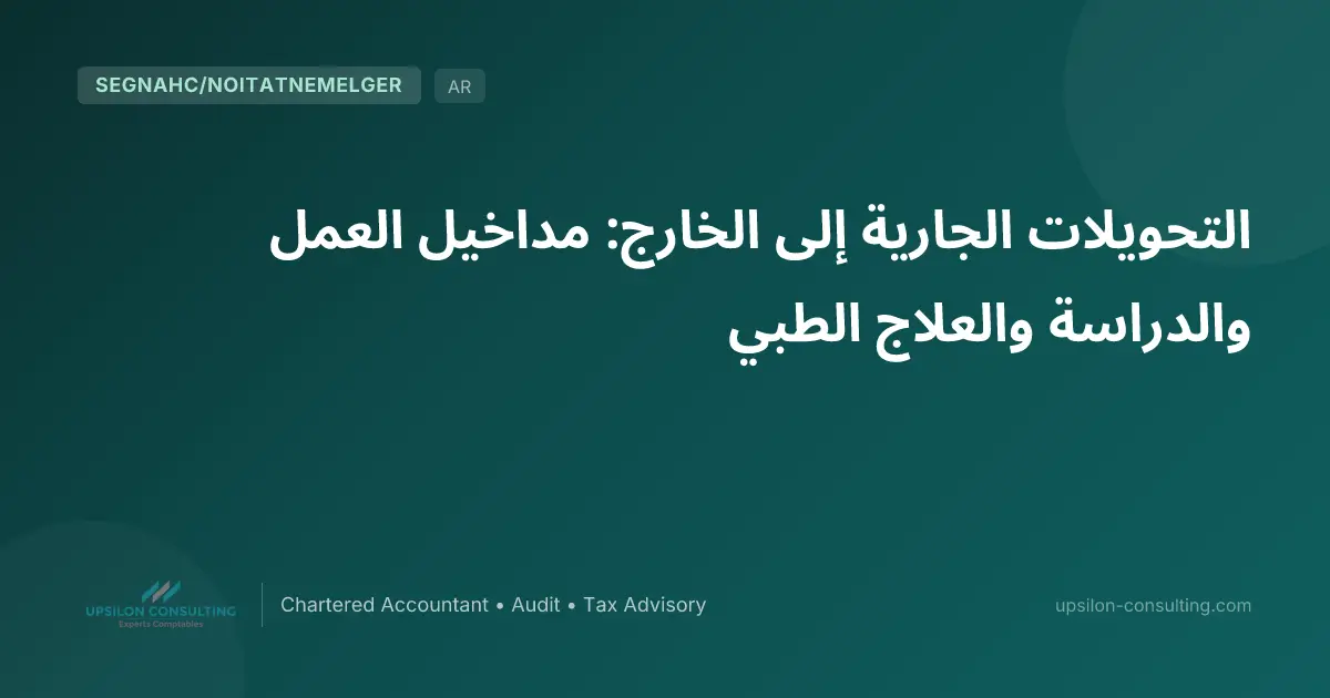 باختصار: تؤطر IGOC 2026 التحويلات الجارية إلى الخارج من المغرب: مداخيل عمل الأجراء الأجانب، عائدات الاستثمارات (أرباح أسهم، فوائد، إيجارات)، معاشات التقاعد، الأعباء الاجتماعية والعمليات المتنوعة. تخضع كل فئة لقواعد دقيقة من حيث السقوف والمبررات والإجراءات البنكية. يرافقكم Upsilon Consulting لتأمين تحويلاتكم وإعداد الملفات المطابقة.