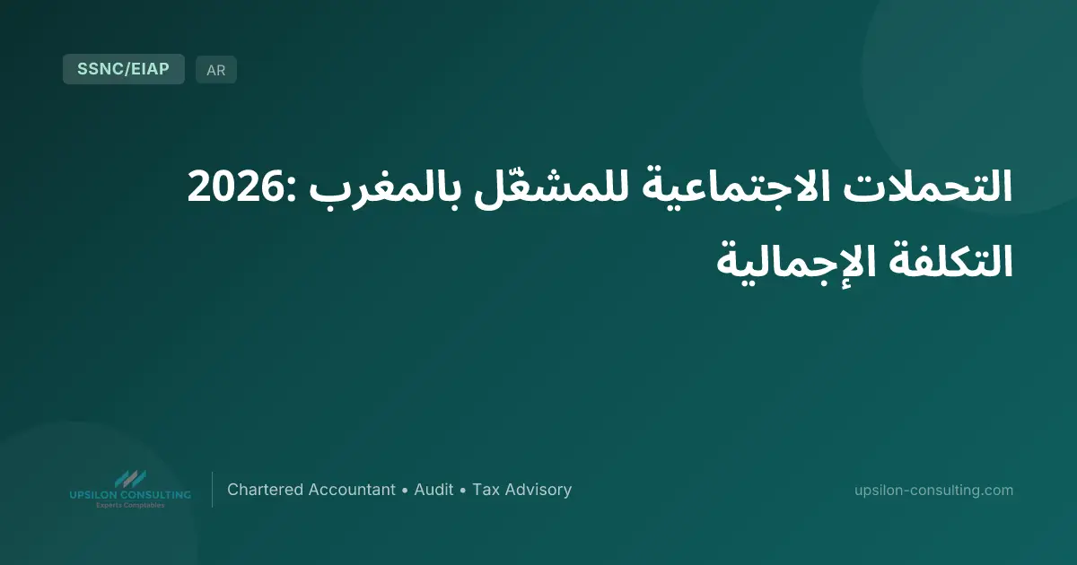 باختصار: في 2026، تبلغ التحملات الاجتماعية الإلزامية للمشغّل بالمغرب 21,09% من الأجر الإجمالي (CNSS + AMO + ضريبة التكوين المهني). بالنسبة لأجر 8.000 درهم، تبلغ التكلفة الإلزامية على المشغّل 1.507,60 درهم، أي تكلفة إجمالية قدرها 9.507,60 درهم. يمكن للاشتراكات الاختيارية (CIMR، تعاضدية) رفع هذه النسبة إلى 25-30%.