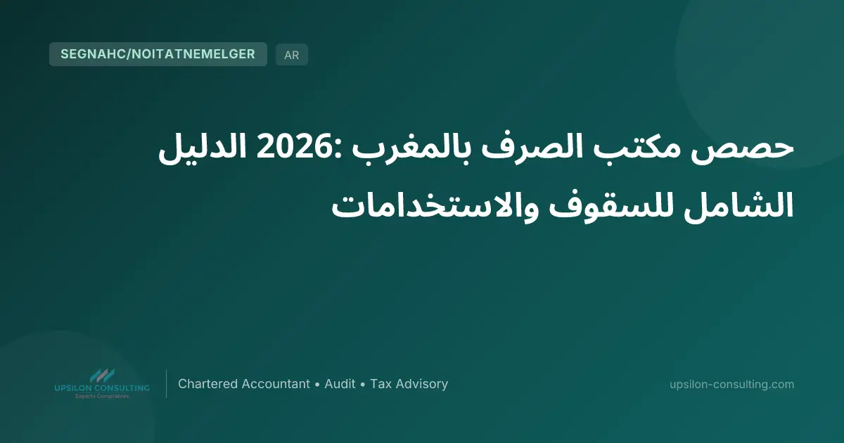 باختصار: حصص مكتب الصرف هي المخصصات السنوية بالعملة الأجنبية الممنوحة للمقيمين المغاربة بموجب IGOC 2026 لتغطية احتياجاتهم خارج المغرب. أهم المبالغ المرجعية لسنة 2026: السفر الشخصي 100 000 درهم/سنة (شريحة أساس، قابلة للرفع بشروط الضريبة على الدخل)، السفر للأعمال المحسوب على الضريبة على الشركات المؤداة، الدراسة بالخارج 15 000 درهم/شهر، التجارة الإلكترونية للأشخاص الذاتيين 20 000 درهم/سنة، التجارة الإلكترونية للشركات ابتداء من 50 000 درهم (على أساس الضريبة على الشركات). تضاف إلى ذلك حصص العلاج بالخارج واستيراد الخدمات والحج والعمرة. يلخص هذا الدليل المحوري الحدود الدنيا والسقوف والشروط والإجراءات لكل نظام.