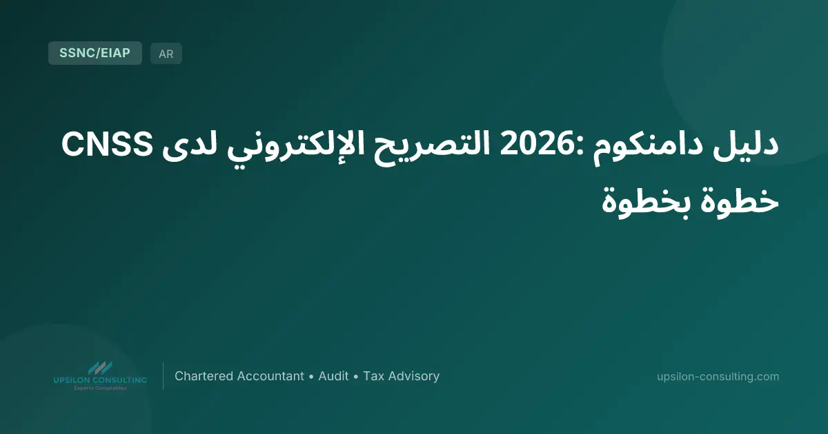 هل ترغب في إسناد تدبير تصريحاتكم لدى CNSS وتأمين التزاماتكم الاجتماعية؟ تواصلوا مع Upsilon Consulting، مكتب خبرة محاسبية بالدار البيضاء، للمواكبة الشاملة في الأجور والتصريحات الاجتماعية.
