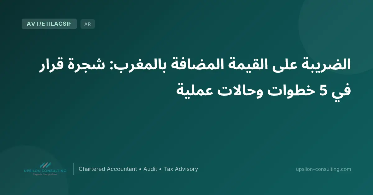 باختصار — هل عمليتك خاضعة للضريبة على القيمة المضافة بالمغرب، معفاة أو خارج النطاق؟ يقدم هذا المقال شجرة قرار من 5 خطوات لتحديد وضع أي عملية من حيث الضريبة على القيمة المضافة: الطبيعة، نطاق التطبيق، خيار الخضوع، الإعفاءات والأسعار. ستة حالات عملية توضح المنهجية. للتحديد الفوري، استخدم أداتنا التفاعلية أو حمّل دليل TVA المغرب 2026 بصيغة PDF. للاطلاع الشامل، راجع دليلنا العام للضريبة على القيمة المضافة بالمغرب.