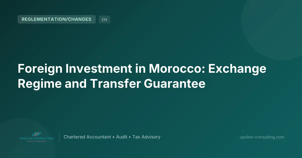In brief: The Moroccan exchange regime grants foreign investors a transfer guarantee covering investment income and the proceeds from disposal or liquidation. The IGOC 2026 introduces new flexibilities, including representations and warranties for residents toward non-residents and a facility for long-term foreign residents. Upsilon Consulting supports foreign investors in structuring their exchange operations.