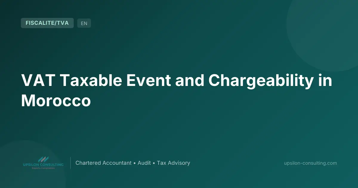 The taxable event for VAT in Morocco is the event that gives rise to the taxpayer’s tax liability towards the Treasury. It determines the moment from which the tax becomes chargeable and must be declared and remitted to the tax administration.