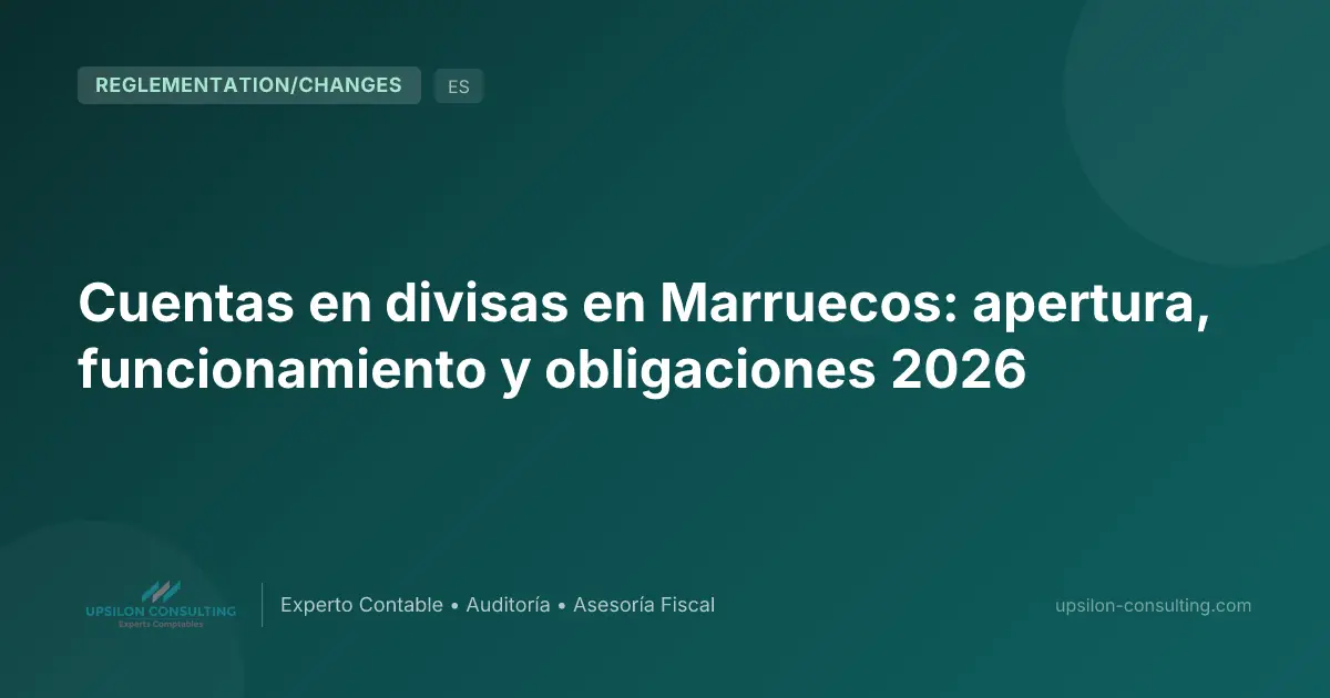En resumen: La IGOC 2026 organiza las cuentas en divisas en Marruecos en varias categorías: cuentas de no residentes y de extranjeros residentes, cuentas de exportadores (alimentadas hasta el 70 % de los ingresos), cuentas especiales (comercio internacional, OPCVM, CFC) y cuentas en dirhams convertibles. Cada categoría obedece a reglas precisas de crédito y débito. Upsilon Consulting le acompaña en la apertura y gestión conforme de sus cuentas en divisas.
