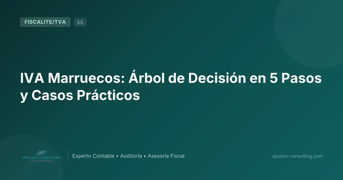 En resumen — ¿Su operación está sujeta al IVA en Marruecos, exenta o fuera del ámbito? Este artículo propone un árbol de decisión en 5 pasos para calificar cualquier operación a efectos del IVA: naturaleza, ámbito de aplicación, opción, exenciones y tipos. Seis casos prácticos ilustran la metodología. Para una calificación instantánea, utilice nuestra herramienta interactiva o descargue la guía PDF IVA Marruecos 2026. Para una visión completa, consulte nuestra guía general del IVA en Marruecos.