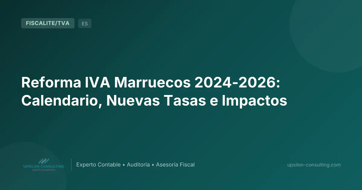 Desde el 1 de enero de 2026, Marruecos aplica únicamente dos tasas de IVA: la tasa normal del 20 % y la tasa reducida del 10 %. Las antiguas tasas del 7 % y 14 % fueron suprimidas por la reforma iniciada por la Ley de Finanzas 2024 y finalizada por la Ley de Finanzas 2026. La tasa del 10 % se subdivide en dos categorías: 10 % con derecho a deducción (alojamiento, restauración, banca, transporte urbano/por carretera, productos alimentarios, energía renovable) y 10 % sin derecho a deducción (corredores y agentes de seguros).