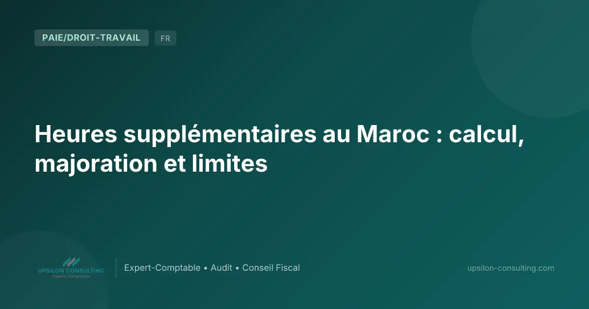 En bref : Les heures supplémentaires au Maroc sont majorées de 25 % le jour ouvrable, 50 % la nuit ouvrable ou le jour de repos/férié, et 100 % la nuit d’un jour de repos ou férié (Art. 201). La durée normale du travail est de 44 heures/semaine dans le secteur non-agricole et 2 496 heures/an dans le secteur agricole (Art. 184). L’annualisation du temps de travail est possible sous conditions (Art. 196).