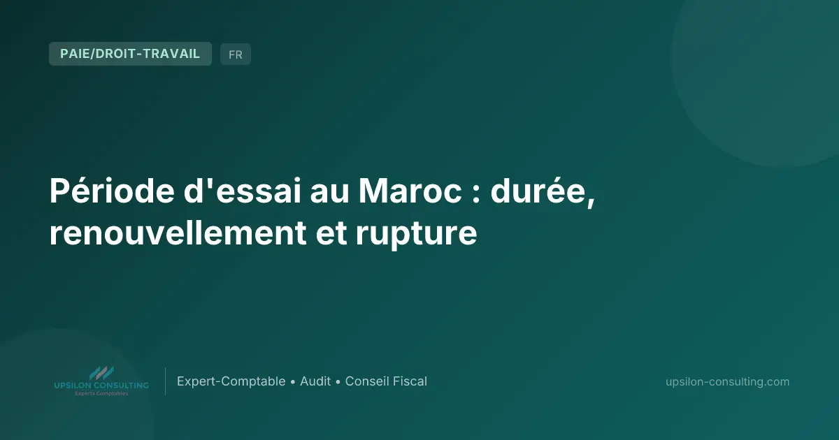 En bref : La période d’essai au Maroc permet à l’employeur d’évaluer les compétences du salarié et à ce dernier d’apprécier les conditions de travail. Sa durée varie selon la catégorie professionnelle : 3 mois pour les cadres, 1,5 mois pour les employés et 15 jours pour les ouvriers (Art. 13-14 du Code du travail). Elle est renouvelable une seule fois. La rupture pendant l’essai est libre mais soumise à un préavis minimum.